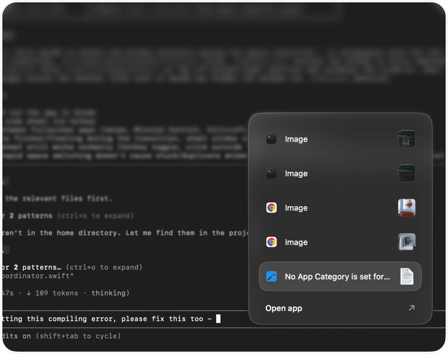 Pastery dock - For quick access to your recent items, opens right at your cursor position